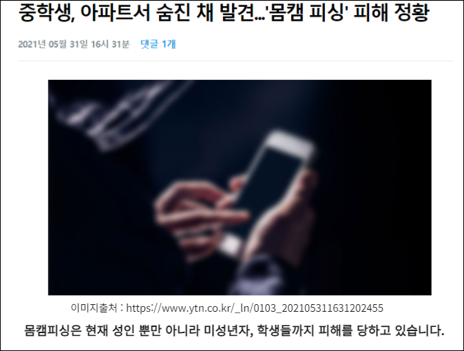 안녕하세요, 어제 TV 프로그램을 보다가 우연히 알게 된 것은 바로 디지털 성범죄의 심각성으로 인해 몸캠피싱 피해자가 급속도로 늘어나고 있다는 것입니다. 물론 디지털 기술이 발전하는 것은 좋은 현상이지만, 이를 악용하는 사람들이 늘어나고 있어 항상 조심하셔야 합니다. 특히 피해자 연령대가 점점 낮아지고 있기 때문이 더욱 위험한데요. 몇 달 전 한 중학생이 몸캠피싱 피해를 이겨내지 못한 채 옥상에서 떨어지는 극단적인 선택을 한 뉴스 기사를 확인하였습니다.