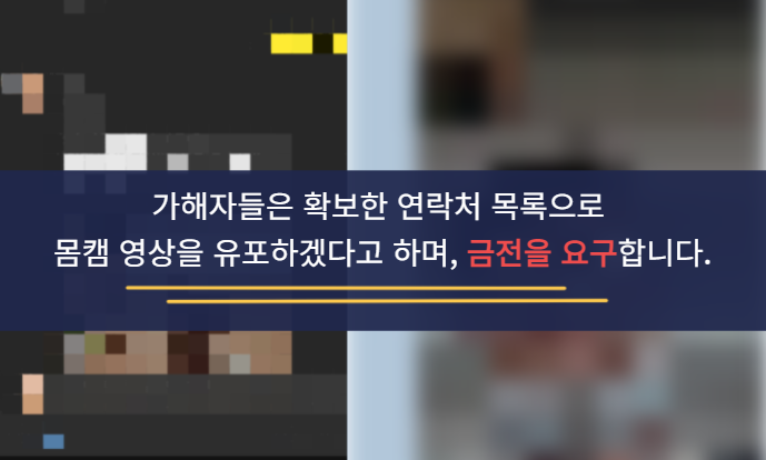 연락처만 탈취된 것도 문제지만 더 큰 문제는 바로 신체 부위 일부분이 노출된 영상통화 녹화본을 가해자들이 보유하고 있다는 것입니다. 그들은 약점을 잡기 위해 성적 호기심을 자극하는 대화를 시도하고 결국에는 영상통화로 신체 부위를 노출하도록 만드는 것입니다.