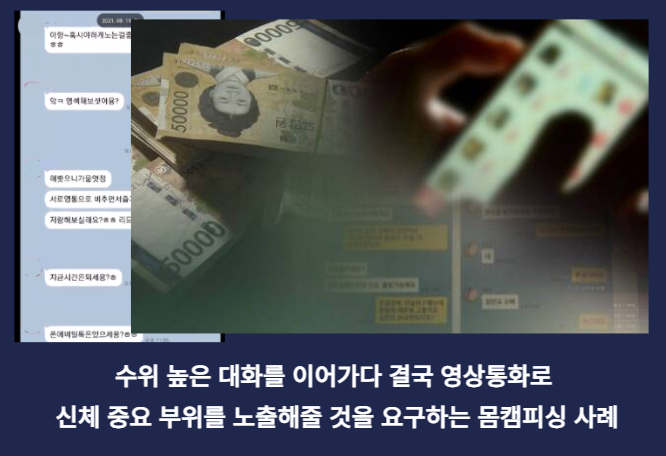 하지만 SNS나 랜덤채팅 어플을 통해 몸캠피싱 피해를 보는 사례들이 점점 늘어나고 있어서 주의가 필요할 것 같습니다. 가해자들은 익명성이 보장된 공간에서 피해 대상을 물색하고 성적 호기심을 자극할 만한 대화를 하며 먼저 유혹을 하기 시작합니다.