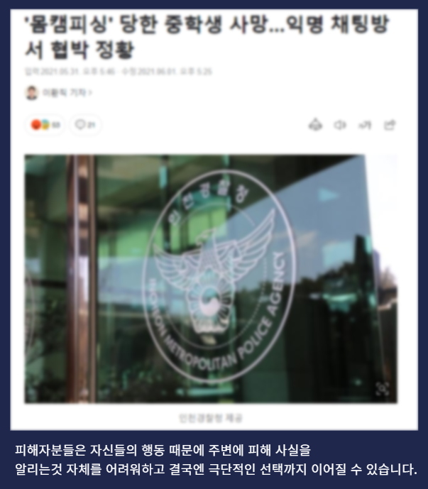 몸캠피싱/몸피카/영상녹화사기/디지털성범죄/협박/해킹바이러스/사이버범죄/사이버명예훼손/동영상유포협박