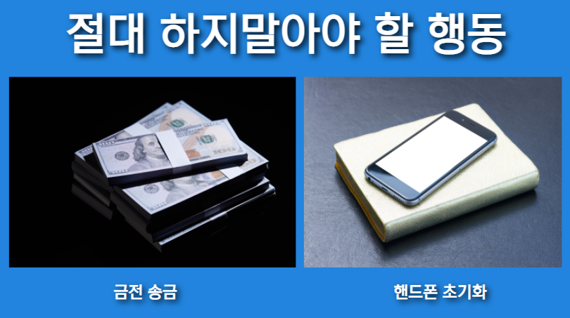 가해자에게 돈을 송금하거나 핸드폰을 초기화하면 안 됩니다!