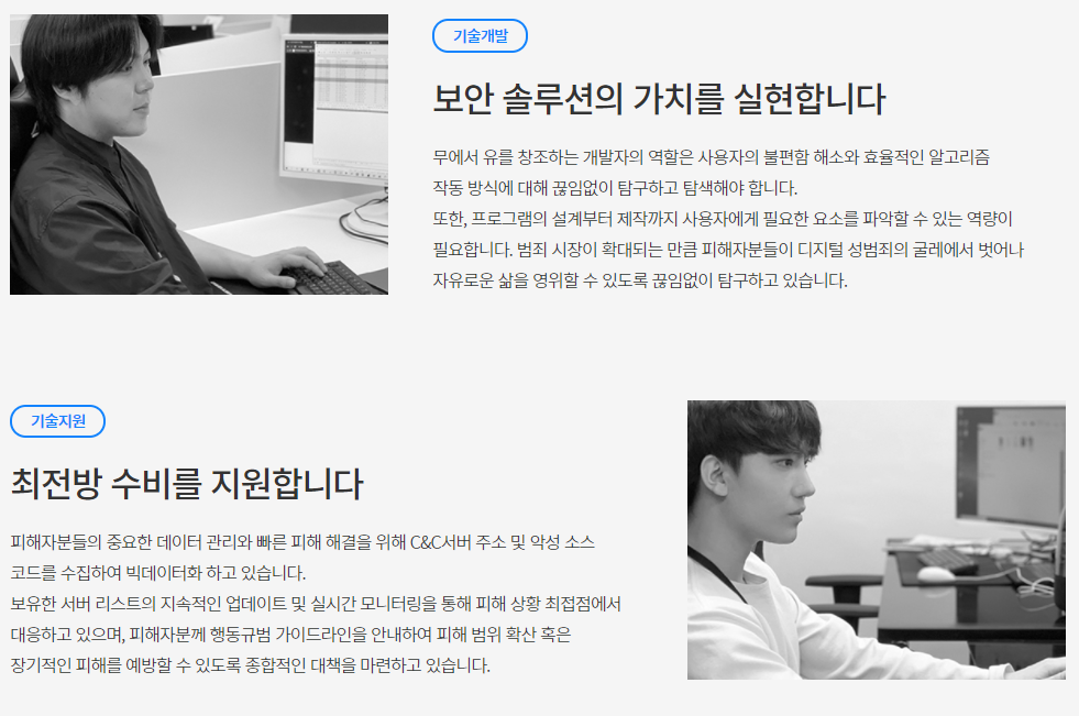 몸캠피싱 대응기업들도 종류는 다양하지만, 어떤 기술을 통해서 도움을 받을 수 있는지 확인을 해보셔야 하고 혹시라도 계약 내용과 다른 경우에는 대응기업 측에 문의를 해보실 수 있습니다. 제가 검색해봤던 곳 중에 한 곳은 기술진의 프로필도 확실하게 보장이 되어 있어서 소비자들이 더욱 신뢰할 수 있을 것 같더라고요!