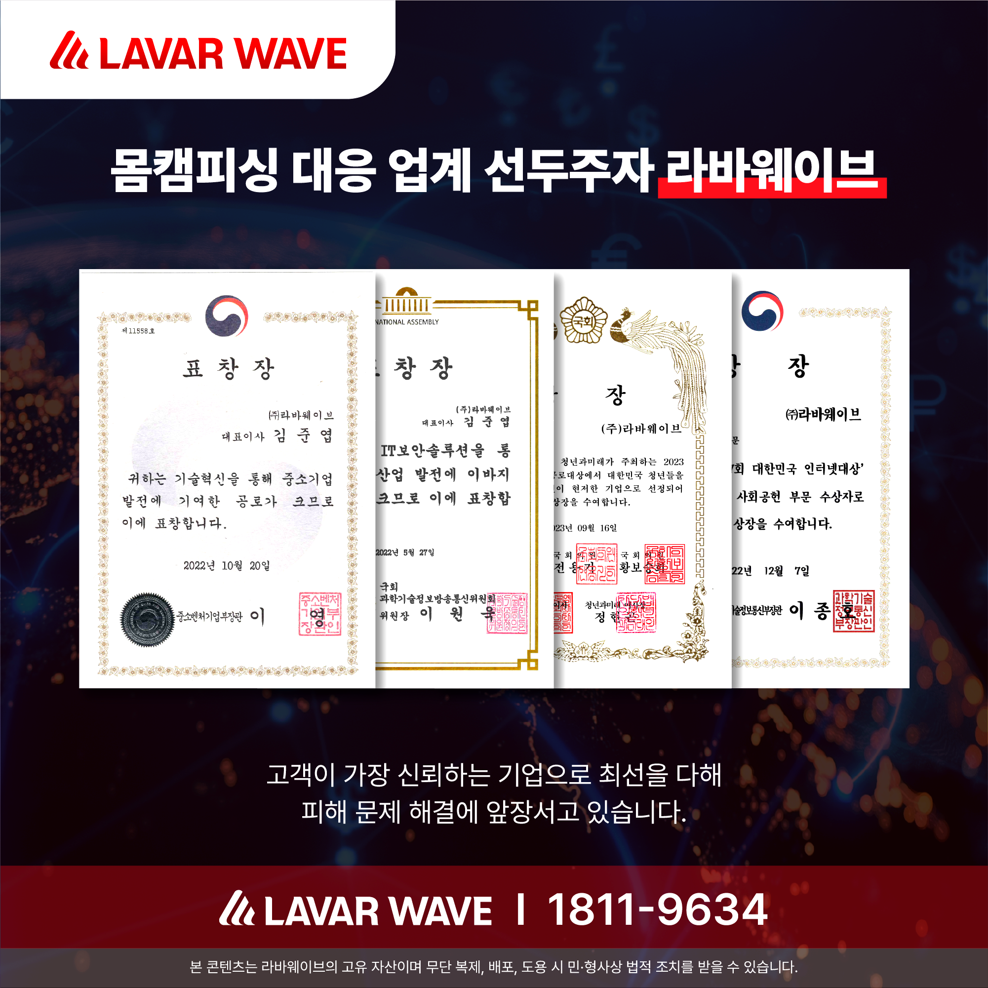 카톡 영섹, 자위동영상 유포 협박과 같은 민감한 사건일수록, 비밀을 보장하며 신속하고 정확하게 대응할 수 있는 전문가가 필요합니다. 라바웨이브는 수많은 관련 사건을 해결해 온 경험을 바탕으로 피해자에게 가장 안정적이고 확실한 솔루션을 제공합니다.